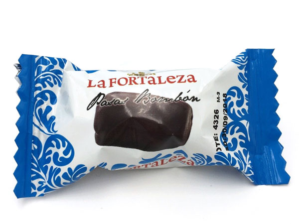 Harina de trigo (gluten), azúcar, grasa de origen animal (manteca de cerdo ibérico), uvas pasas (18%), cobertura de chocolate negro (11,5%) ( pasta de cacao, azúcar, manteca de cacao, emulgentes (lecitina de soja y E-476) y aromas), arroz inflado, cacao desgrasado en polvo, canela, sésamo (ajonjolí), aroma de licor y antioxidante E-320.