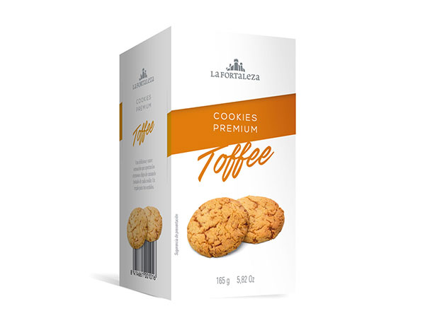 La Fortaleza Toffee Cookies sind außen knusprig und innen cremig. Ohne Zweifel eines der süchtig machenden Produkte im Katalog. Seine Zutaten sind: Weizenmehl (Gluten), Zucker, Margarine, Sonnenblumen- und Kokosöl, Wasser, E-471-Emulgator, Zitronensäure, Toffee-Chips, Glukosesirup, Sahne, Magermilchpulver, Salz, Dextrose, Aroma von Toffee und Vanille, Ei, Triebmittel, Maisstärke, Salz, Natriumbicarbonat und Ammoniumbicarbonat.